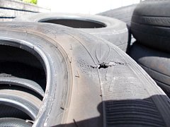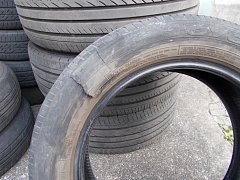 画像のタイヤを見て頂ければ一目瞭然。 高速道路走行中にバーストです。新車装着タイヤで8年経過してました。