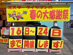 春の大感謝祭やります!スタッドレスからノーマルタイヤに履き替えの時、ノーマルタイヤが 減ってしまっていたら、ぜひこの機会にどうぞ!スタッフ一同、お待ちしてます!