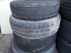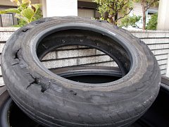 画像の3本の廃タイヤは、パンクや側面が切れたりなどの理由でタイヤ交換した物です。 他にも5本パンク修理してます。1日半で7人の方がパンクでのご来店でした。