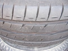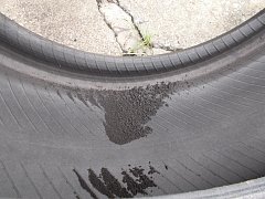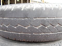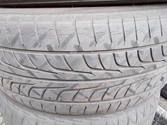 画像を見て頂ければ一目瞭然な”片べり”です。 タイヤの真ん中はまだミゾが残っています。