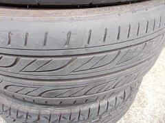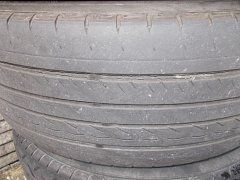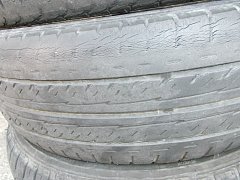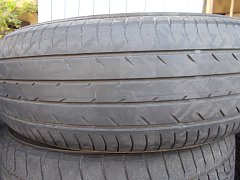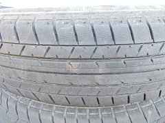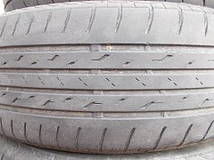 新車装着タイヤで47000km走行されています。画像のように4本ともスリップサインが出ています。 4本の綺麗な減り方、47000kmも持ったと云う事は、空気圧管理&適切なローテーションの賜物です。