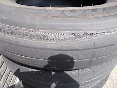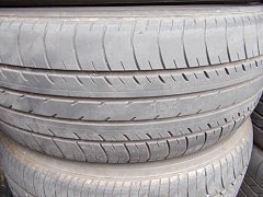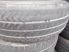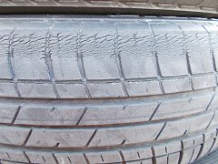 エスティマにお乗りのお客様、「白線の上やマンホールの上を走ると、雨じゃなくても滑るから 怖いんです。」との事で、タイヤを点検させて頂きました。