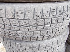 タイヤ交換させて頂きましたお客様の外したタイヤを見ますと、スタッドレスが付いていました。 見た感じですが、スタッドレスとしては使えそうにない感じですので、履き潰しされた感じです。