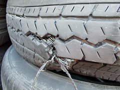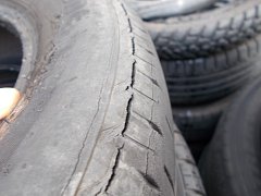 製造から4年経過のタイヤですが、タイヤ側面がバックリ割れて来てます。 最近のタイヤはひび割れが入るのが早いような気がしますが・・・。