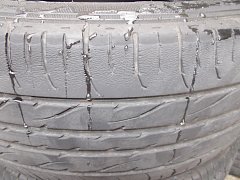 ベルファイアにお乗りのお客様、値上げ前にタイヤ交換でご来店です。 画像の通りひび割れ&摩耗のためタイヤ交換になりました。