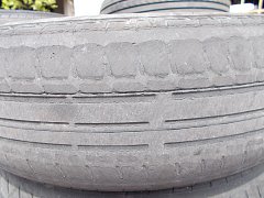 値上がり前にタイヤ交換に来て下さったお客様の外したタイヤの画像です。 完全摩耗です。残溝0ミリです。