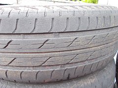 プレイズPXを取り付けさせて頂いたお客様の、外したタイヤの画像になります。 軽カーで41000KM走行されました。軽カーで40000KM越えなら、