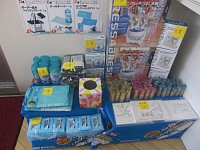 25日(土)からの売り出しに向けての準備完了です。 今回は、暑い夏に向けての粗品がいっぱいです。