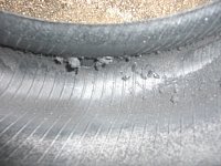画像のタイヤは、縁石か何かに、結構なスピードで乗り上げて、バーストです。 駐停車出来る所まで走行されたので、タイヤ内部は揉みくちゃでボロボロです。
