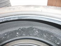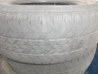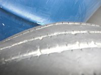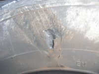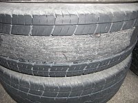 2トントラックの後輪タイヤです。 見事にべろりっとはがれてます。