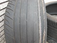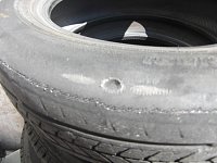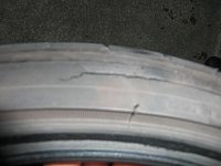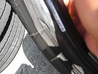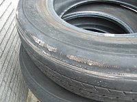 常連様のフロントタイヤなのですが、何かに乗り上げてしまい、タイヤ側面 2箇所に亀裂が入ってしまいました。