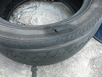 画像をご覧いただければ一目瞭然の”タイヤバースト”です。 空気圧が少ない状態で高速走行を続けると異常に熱が発生して