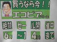 今月6日(土)~14日(日)まで「買うなら、今!!エコピアシリーズ」 のキャンペーンを実施します。