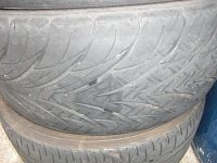 パンクでご来店頂きましたお客さまですが、タイヤは4本とも 画像のようにツルツルです。とくに前輪2本はタイヤ内部のワイヤーが