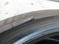 最近多いのが、タイヤ側面を縁石にゴツンと当ててしまって・・・。 タイヤは側面が非常に薄く出来てますので、簡単にダメになってしまいます。