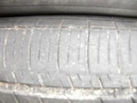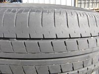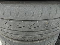 ちょっと見にくいと思いますが、タイヤの内側の写真です。 縁石に乗り上げてタイヤの側面がたんこぶみたいにふくれてしまってます。