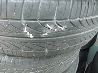 今日ご来店のお客様、パンク修理でみえたのですが、 画像のように、タイヤ1本に付きクギが5本以上刺さってます。