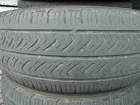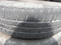 画像上は、「ホンダクロスロード」のお客様の外したタイヤです。 4万2千キロで、見事にキレイに摩耗してます。