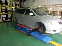 画像上は、カローラフィールダーのお客様に195/60R15SNKⅡを 取り付けです。100キロ点検、お待ちしてます。