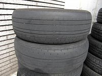 今日、ご来店いただいたお客様、K様のレガシーのタイヤ交換です。 前輪の外側がかなり減っていましたので、ブリヂストンの「MY01」を
