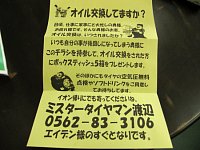 オイル交換にみえた女性のお客様。 先日、ポスティングしたチラシをご持参頂きありがとうございます。