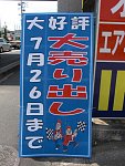 暑いといえば、タイヤ大売り出し! 7月26日までやります。8月の盆休みにETC1,000円乗り放題で