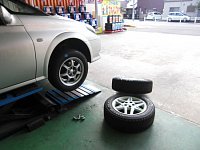まだまだ寒い日がつづきますね。 そのせいか、本日もスタッドレスセット取り付けです。