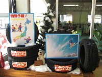 最近、また、暑い日が多いですが、店内にスタッドレスの展示をしました。 今年の初雪予測は、12月10日頃らしいのですが、10月半ばで、