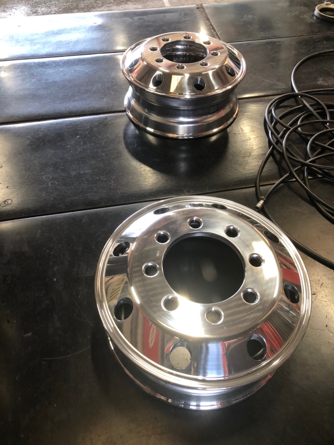 軽いし(大型トラックのホイールにしては)