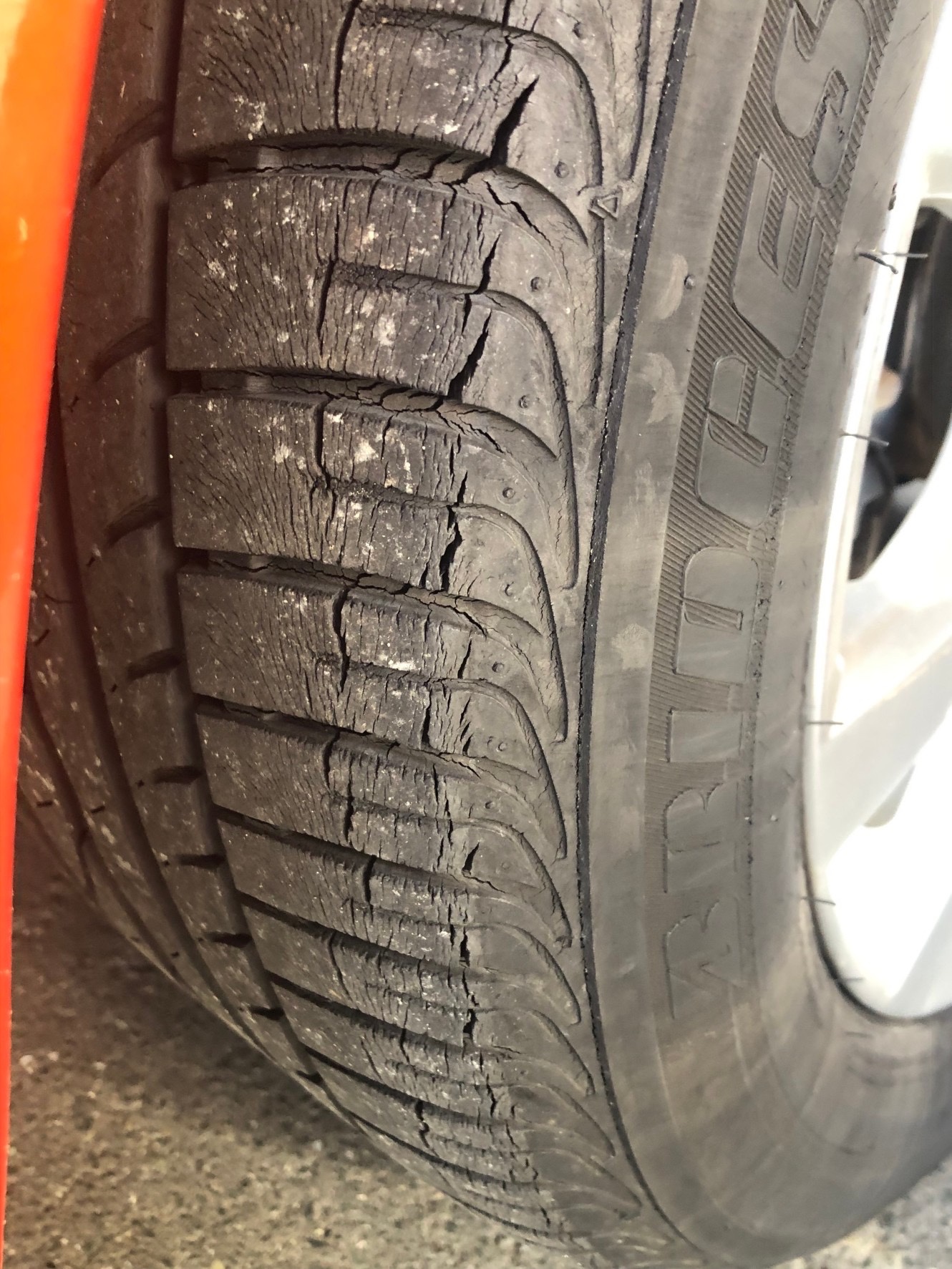 今日はタイヤのひび割れが、好ましくない場所で要交換レベルであったため