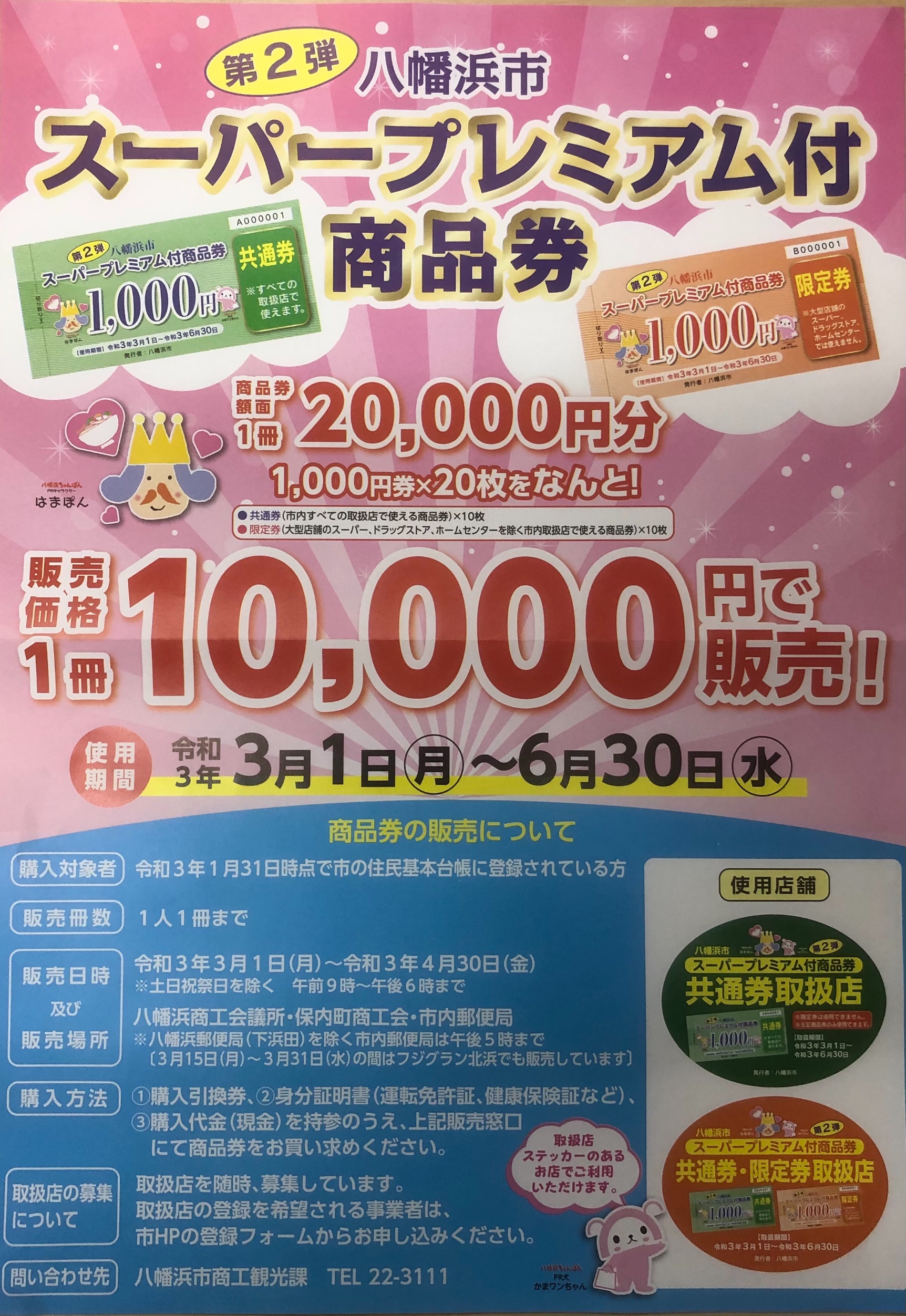 八幡浜市スーパープレミアム付商品券٩(^‿^)۶ 2021年2月25日 またまたお得な商品券が使用出来ますよー(o^^o) 3月1日より使用出来る八幡浜市スーパープレミアム付商品券、当店では共通券、限定券の両方が使用出来ます。 3月といえば冬タイヤから夏タイヤへの履き替え時期ですよね(^o^) 新品タイヤ購入時はもちろんですが、タイヤ履き替え時の作業工賃にも商品券を使用出来ますので他店で購入された方もお気軽にお声掛けください٩(^‿^)۶