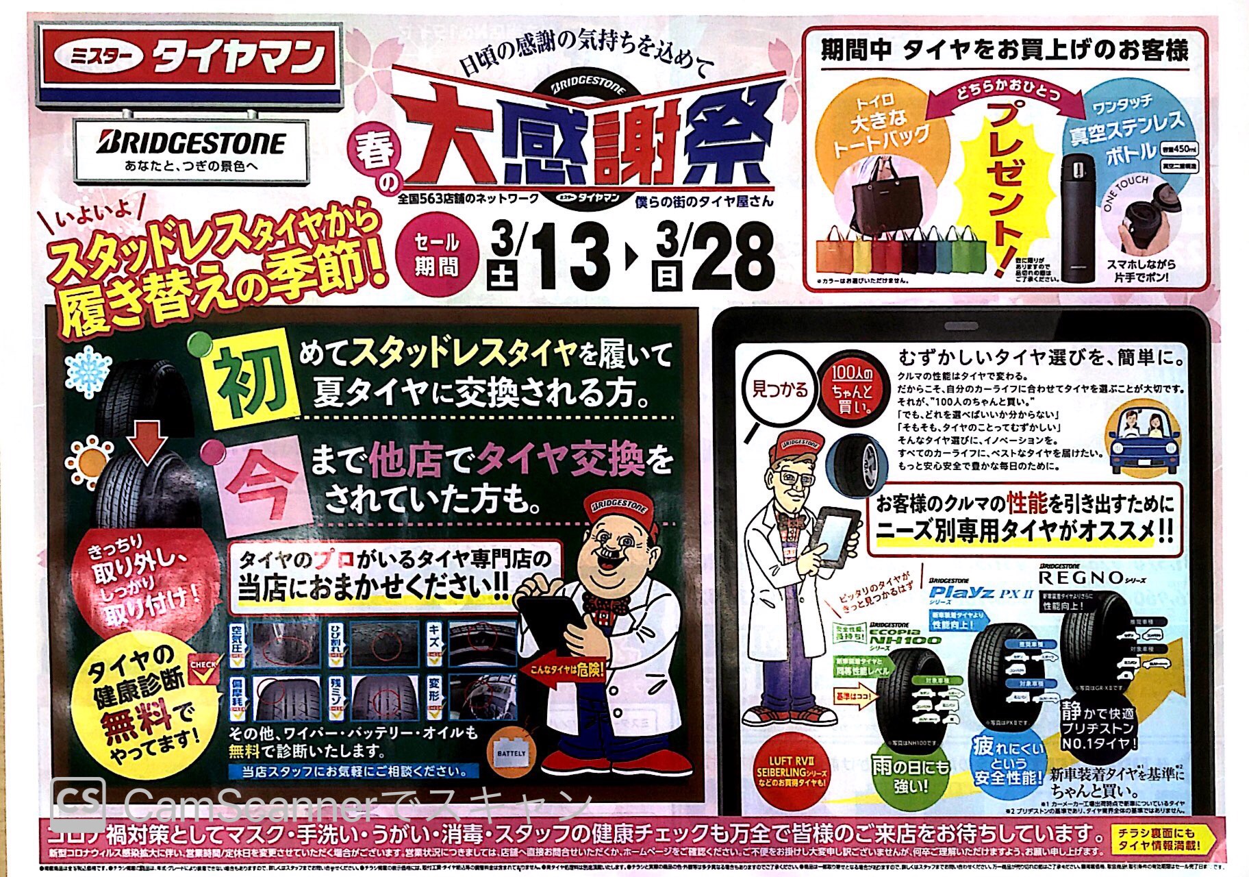 春の大感謝祭٩(^‿^)۶ 2021年3月13日 皆さんこんにちは〜٩(^‿^)۶ 3月13(土)〜3月28日(日)の16日間、春の大感謝祭を開催します。 期間中タイヤ新品お買上げのお客様には素敵なプレゼントもご用意してますのでこの機会にぜひご来店よろしくお願いします(^o^)