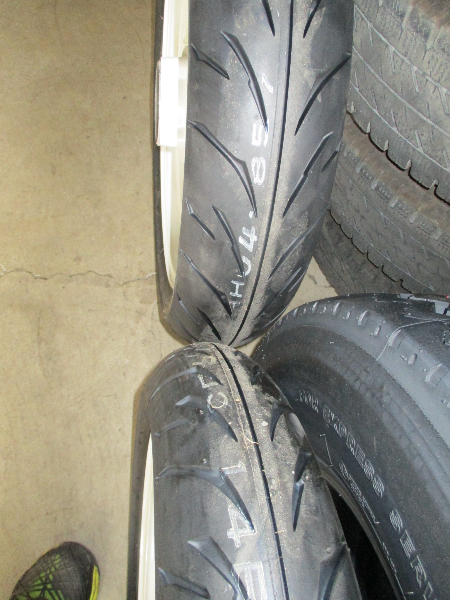 塗装済みのホイールにタイヤを組んだのですが、結構冷や汗でました~>。<