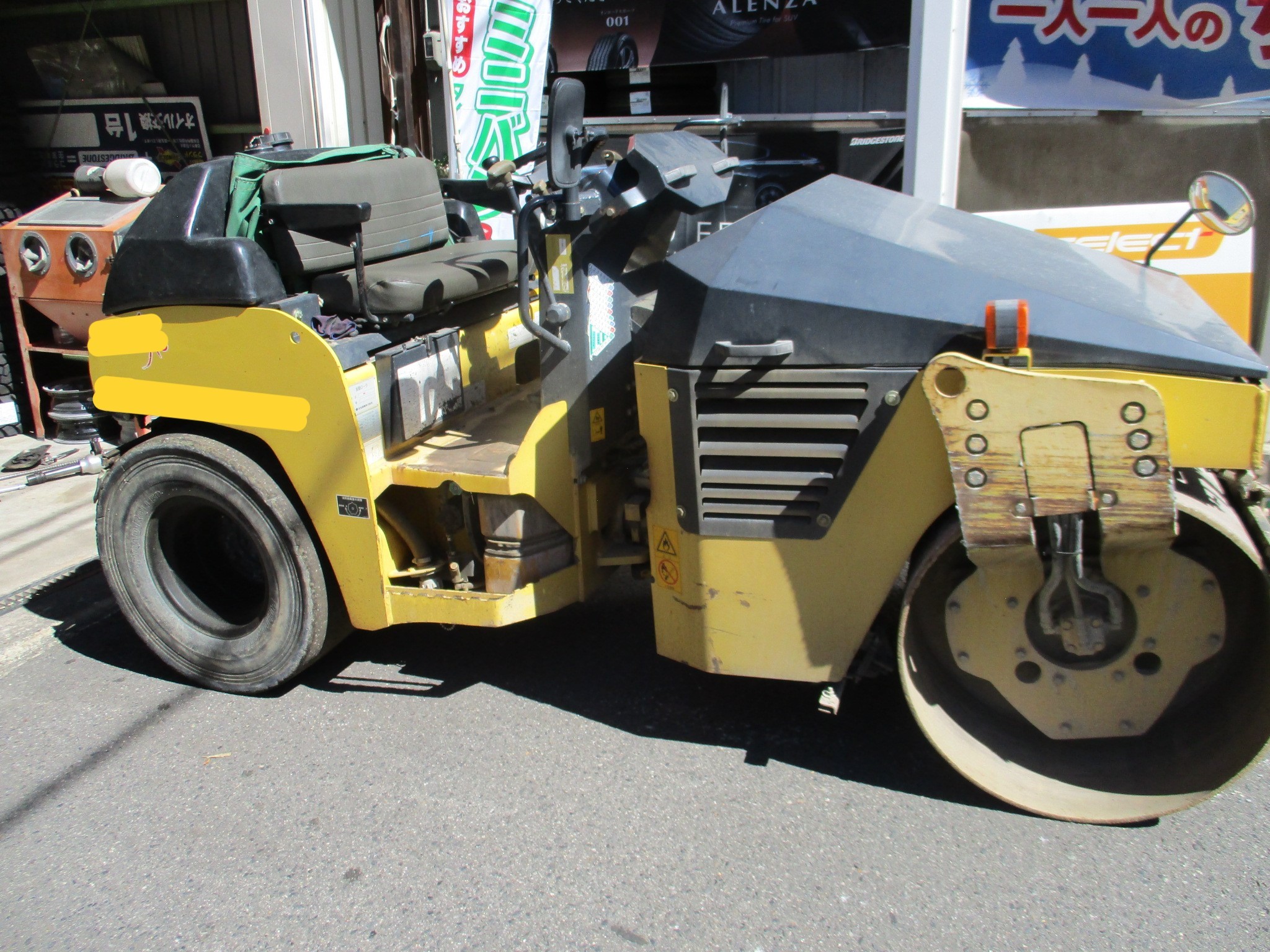 前は鉄のローラーですが、後ろはゴムのタイヤなのでパンクしちゃいます>。<
