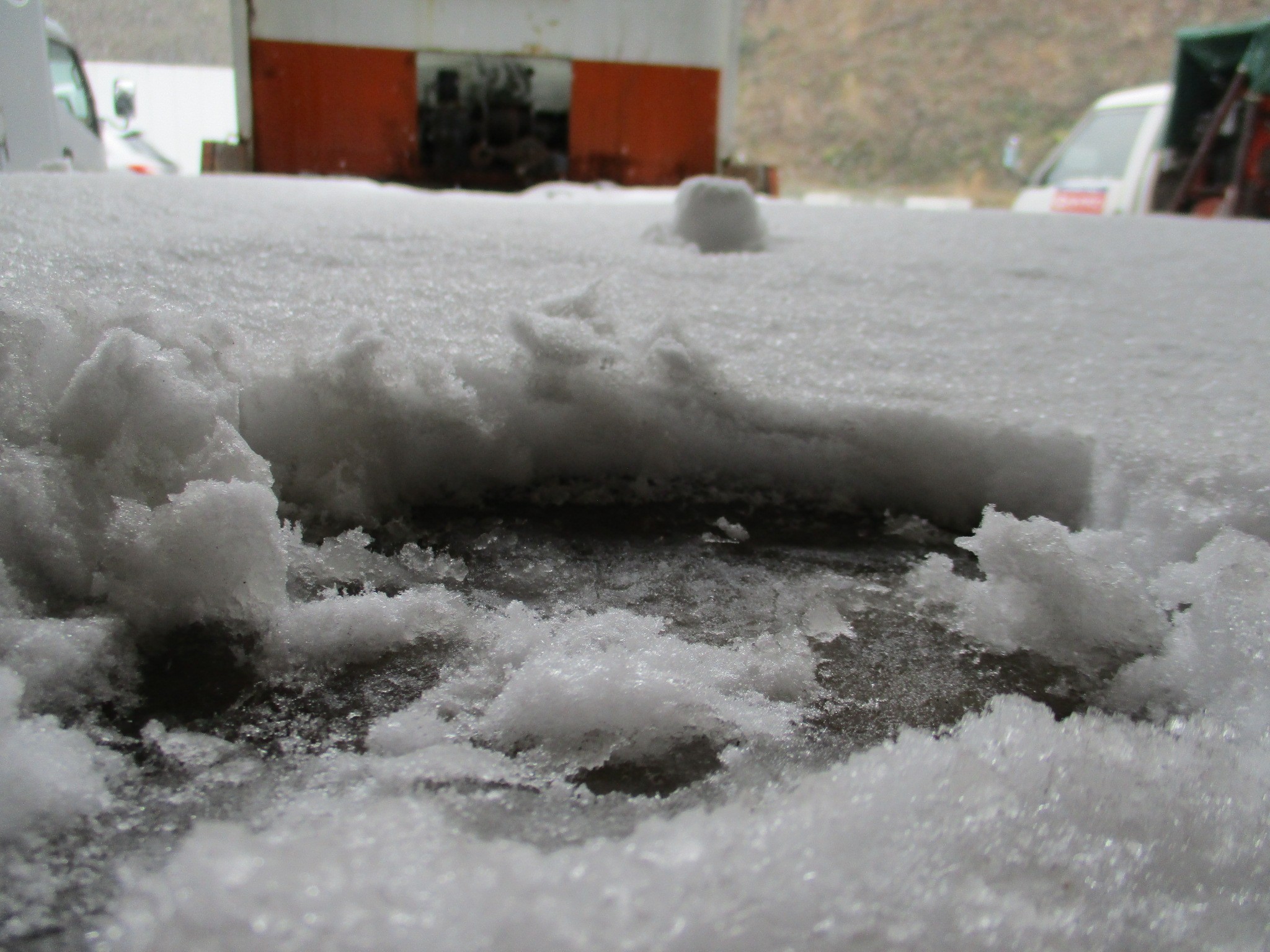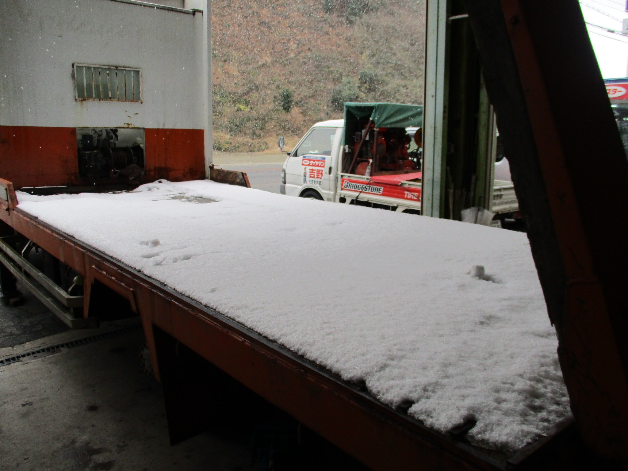 黒滝村からタイヤ交換来店されたトラックなのですが、けっこうゆきが積もってまっした(>_<)