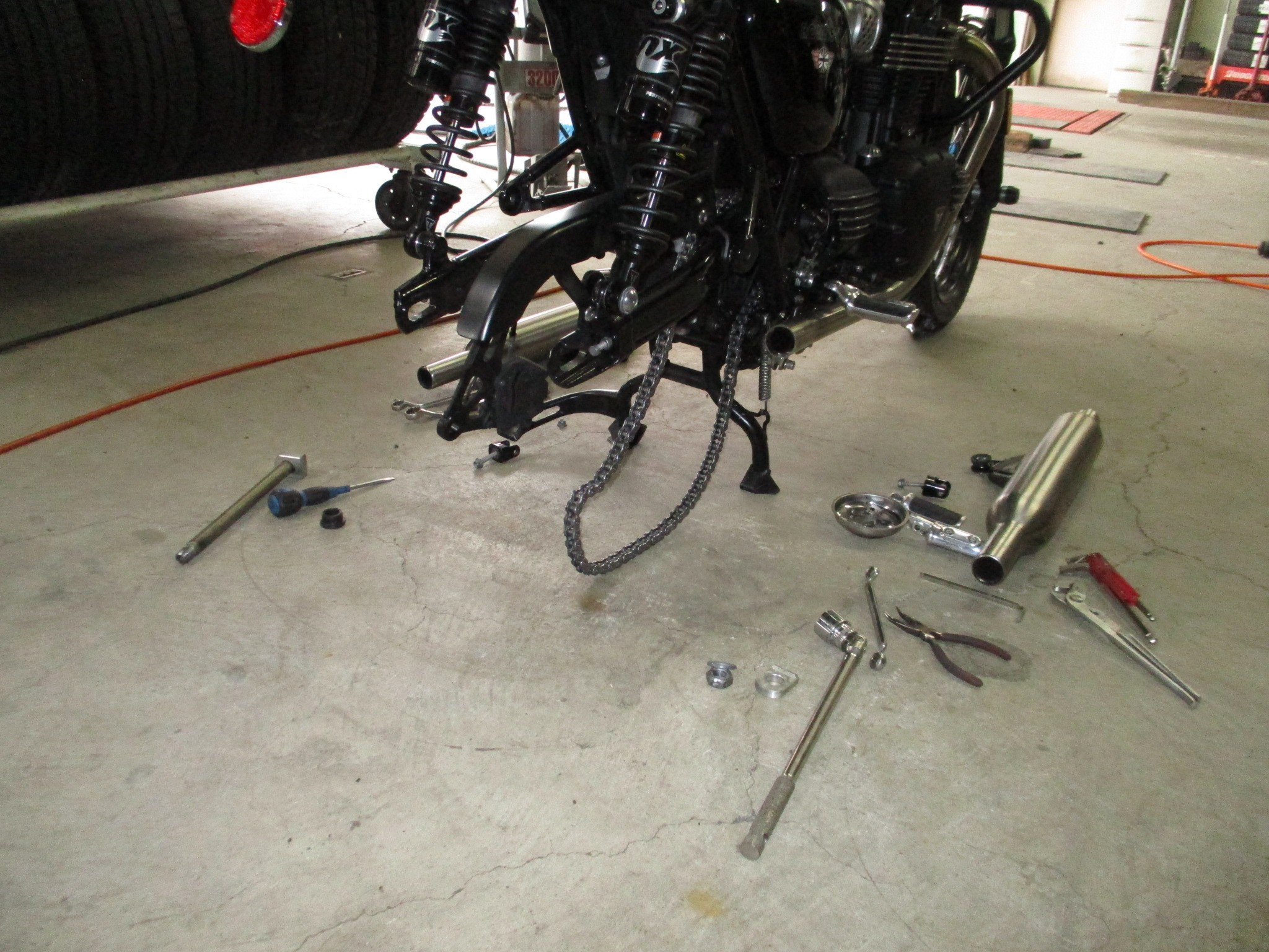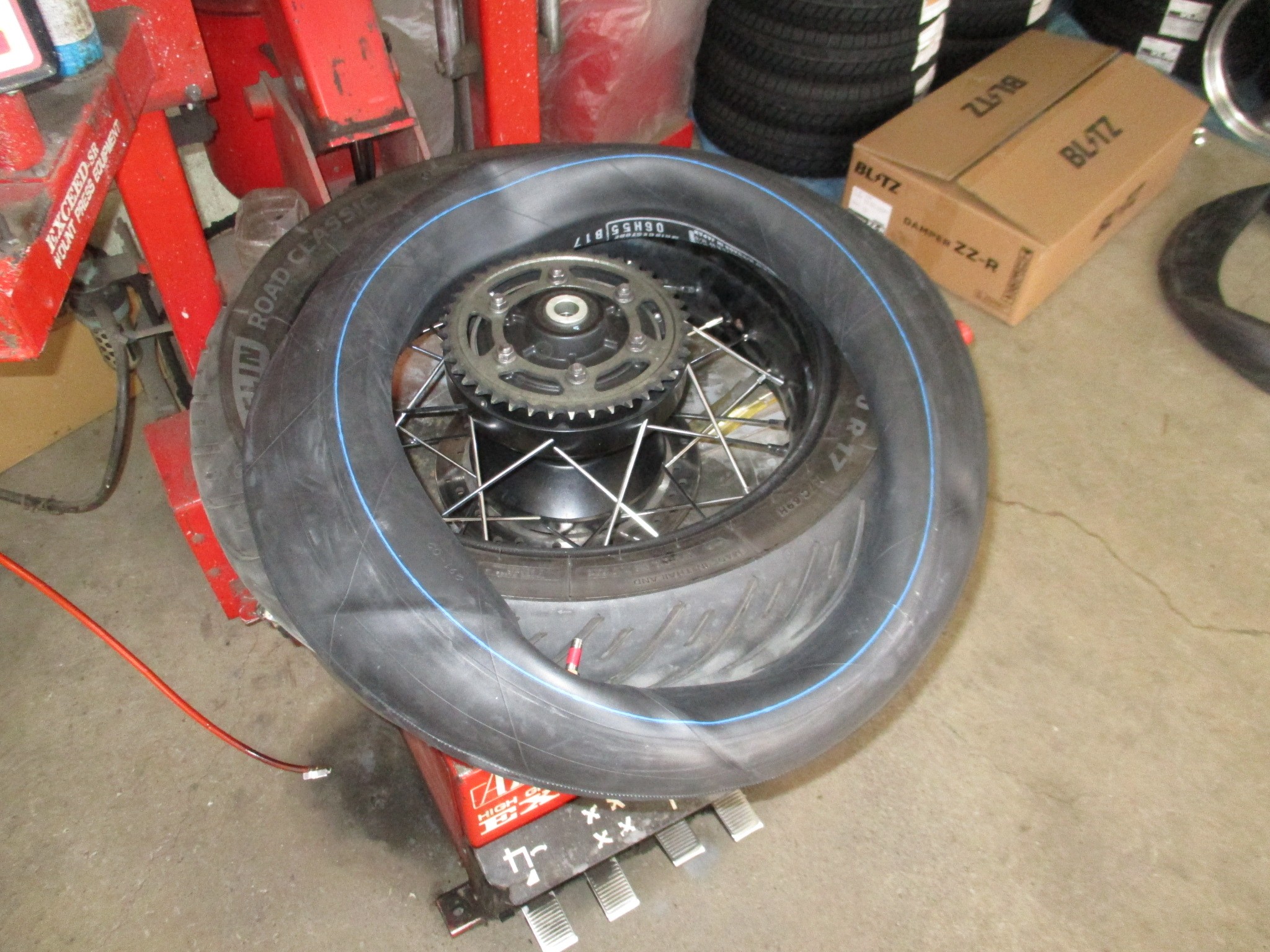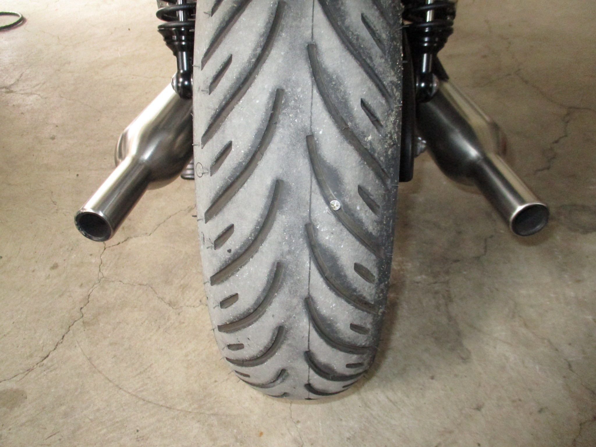 犯人は木ねじでした((+_+))が、しかしこのオートバイはスポークホイールなのでタイヤの中にチューブが入っていますのでまずチューブを確認しましたが
