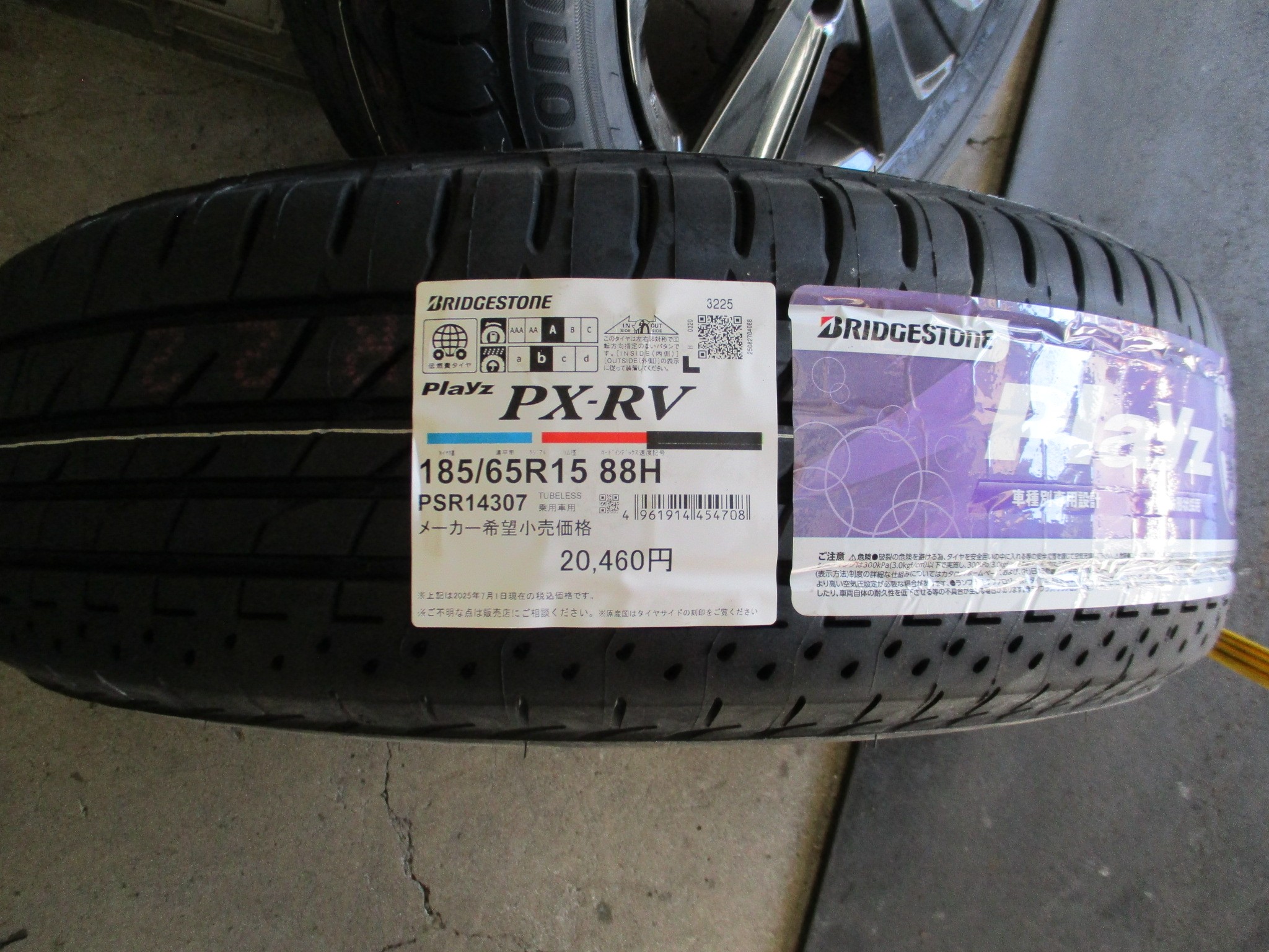 タイヤサイズは、185/65R15です。タイヤパターンはプレイズPX-RVを装着させていただきました。