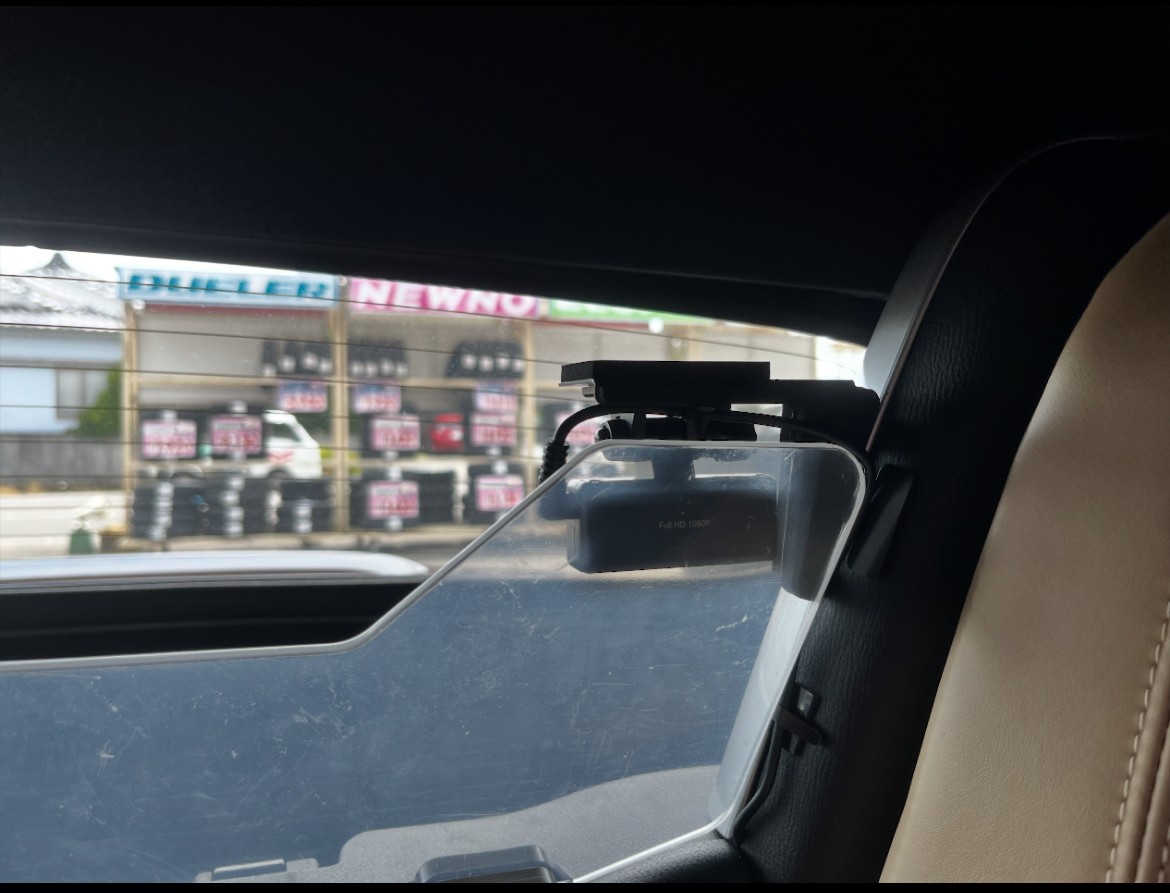 またリヤカメラを窓に貼ることができないクルマだったのでリヤカメラ用のスタンドも