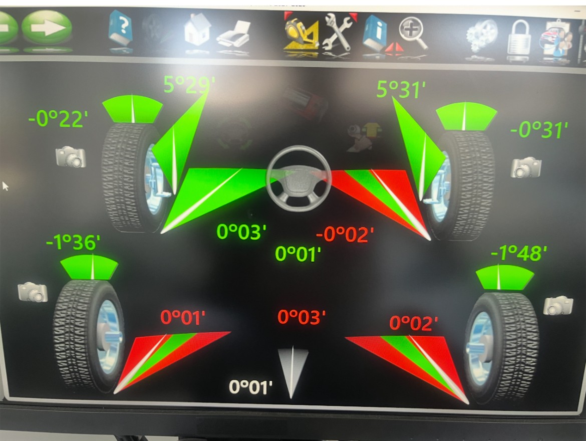さっそく測定をするとフロント右のトー角とリヤ左右のトー角が基準外でした( ;∀;)